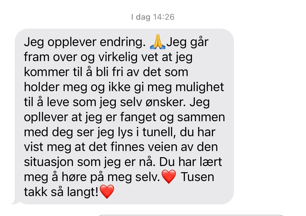 Jeg lover deg hardt arbeid, en prosess full av følelser og kamp, men også en sikker seier med felles arbeid og din disiplin! Jeg kan ikke love at det vil være enkelt, men jeg kan garantere fra min personlige erfaring at det er mulig.